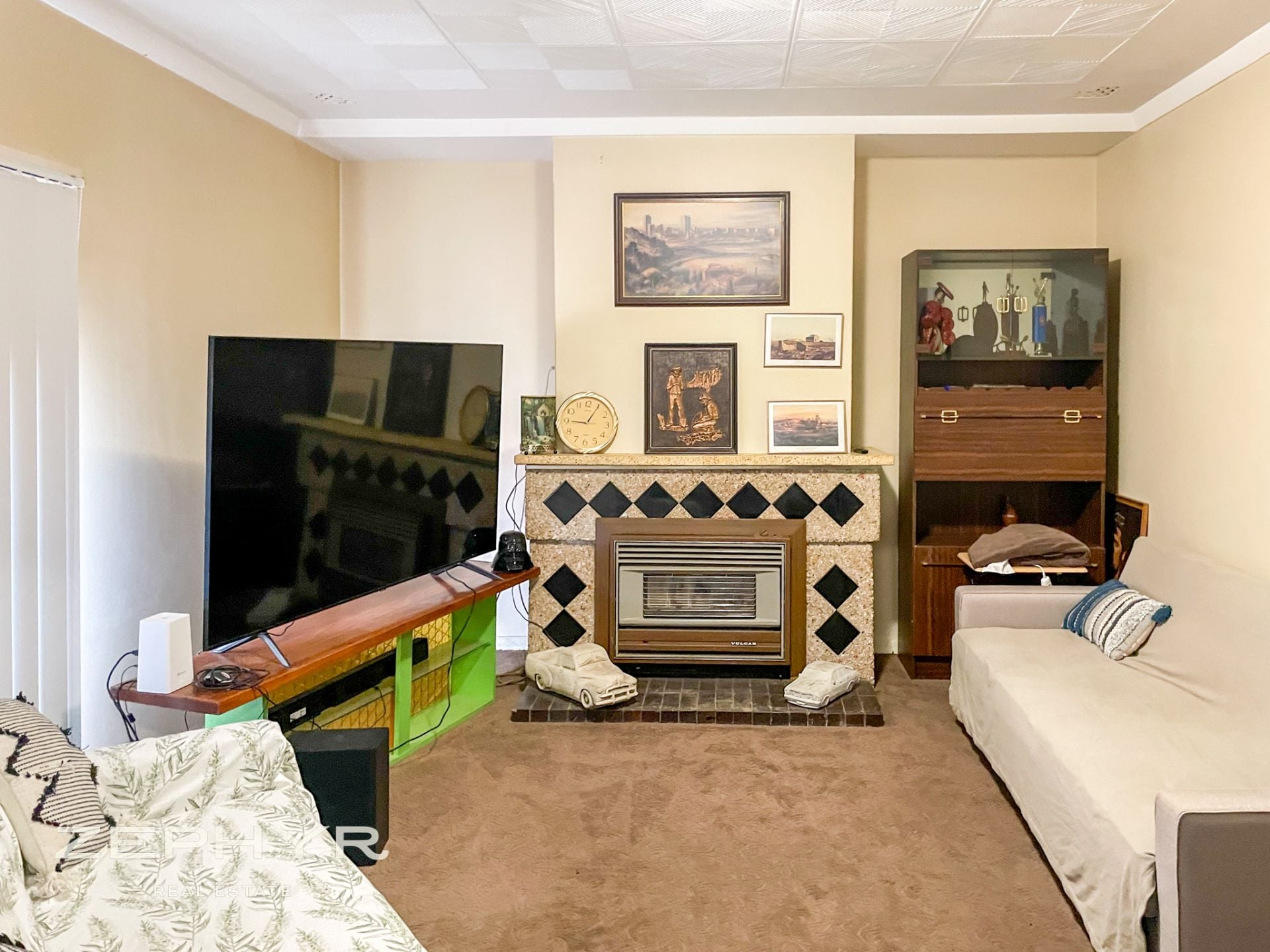 Two vehicle carports at the front of the home plus an outdoor upstairs area to enjoy a sunset or two. To keep you warm and cool in over the year you also have a tile fire plus a reverse cycle air conditioner.