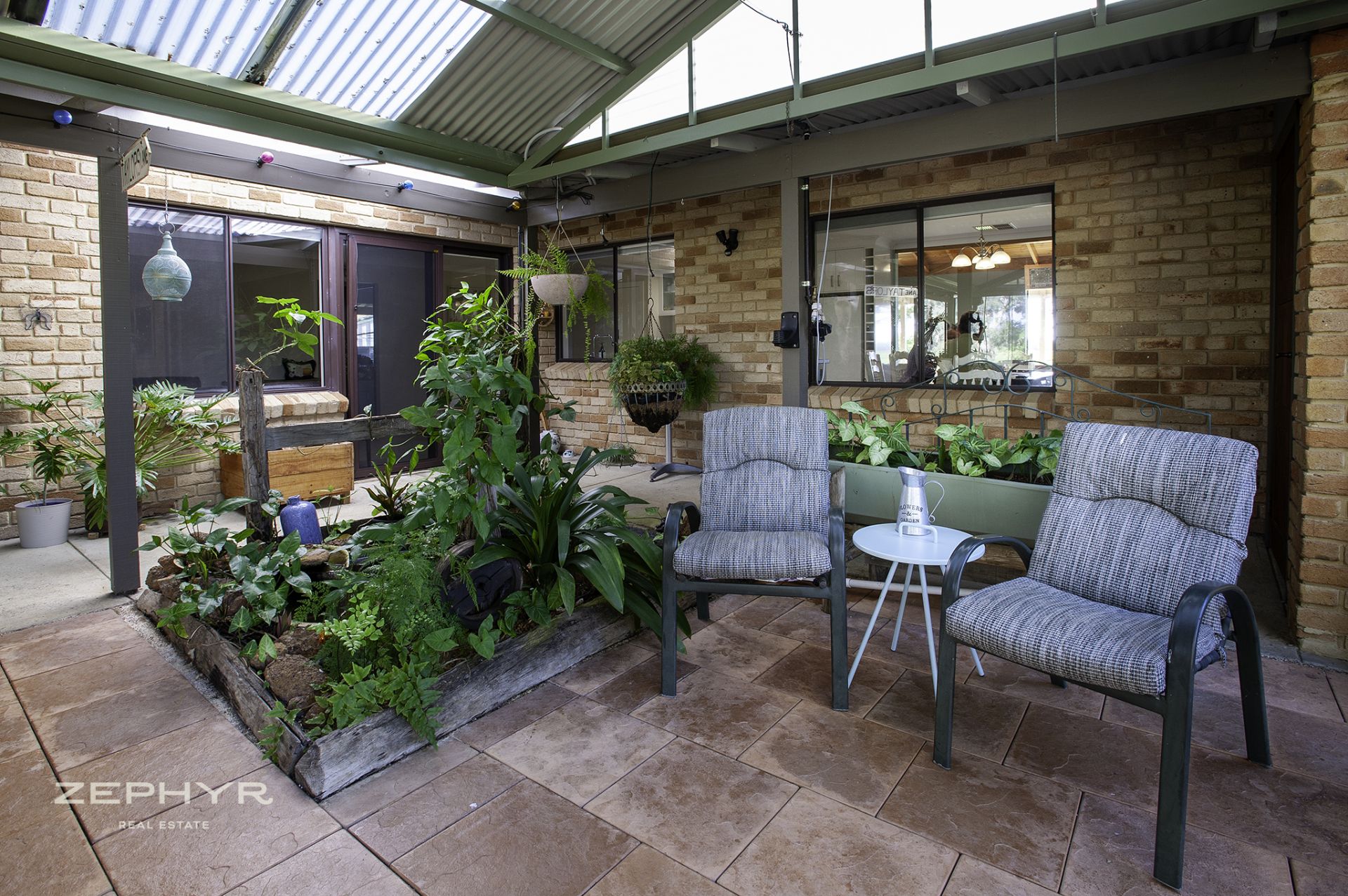 Large patio 8 x 5 m, glass sliding doors & patio blinds